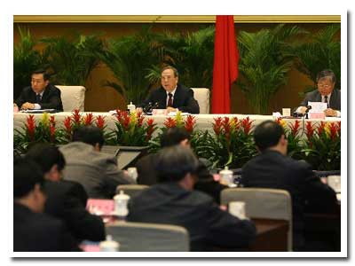 2007年1月25日下午3時,國務院召開全國清理拖欠工程款電視電話會議。中共中央政治局委員、國務院副總理曾培炎出席會議并講話。圖為建設(shè)部部長汪光燾在會上發(fā)言。