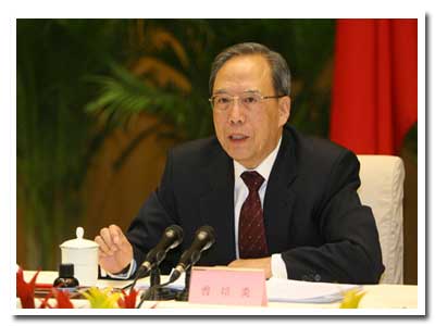 2007年1月25日下午3時,國務院召開全國清理拖欠工程款電視電話會議。中共中央政治局委員、國務院副總理曾培炎出席會議并講話。圖為曾培炎作重要講話。