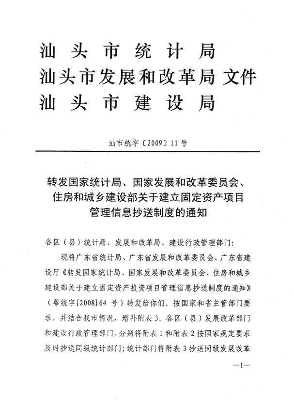 附件:轉(zhuǎn)發(fā)國(guó)家統(tǒng)計(jì)局、國(guó)家發(fā)展和改革委員會(huì)、住房和城鄉(xiāng)建設(shè)部關(guān)于建立固定資產(chǎn)投資項(xiàng)目管理信息抄送制度的通知