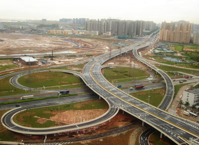 寶安大道—深南路連接段市政工程Ⅱ標(biāo),位于深圳市南山區(qū)南頭汽車總站旁,由市龍華深圳公司承建,于2005年8月正式開工,于2007年6月底完工,工期545天。該項目總長889.329m,累計完成產(chǎn)值約6773.45萬元,是一項集路、橋、水電施工的綜合系統(tǒng)工程;施工范圍包括主線橋第十~十五聯(lián),匝道橋二座,人行天橋一座及前海路和深南路施工范圍內(nèi)的軟基處理、道路工程、給排水管道工程、通信電力管道工程及其他附屬工程。針對項目涉及專業(yè)多、現(xiàn)場施工條件復(fù)雜、工期緊、施工技術(shù)難度大、機械設(shè)備投入大、質(zhì)量要求高的特點,該司組建了一支素質(zhì)高、質(zhì)量意識強、施工經(jīng)驗豐富的項目管理班子,在落實項目管理責(zé)任制的基礎(chǔ)上,明確各分部分項工程質(zhì)量目標(biāo),通過精心編制施工組織方案,嚴(yán)格施工全過程的質(zhì)量控制,從嚴(yán)把好測量關(guān)、工藝關(guān)、設(shè)備關(guān)、安全關(guān),最終實現(xiàn)了既定的創(chuàng)優(yōu)目標(biāo)。