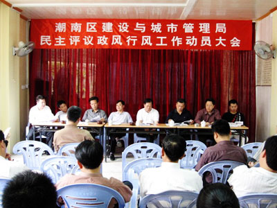 陳友壯局長在動員中指出,開展政風行風評議工作,是主動接受社會和群眾評議,加快作風轉(zhuǎn)變,提高干部隊伍整體素質(zhì)的重要途徑,更是建設(shè)系統(tǒng)全面推進依法行政、進一步提升我區(qū)城鄉(xiāng)建設(shè)管理服務(wù)水平的重大舉措。建設(shè)系統(tǒng)全體干部、職工一定要站在學習實踐科學發(fā)展觀的政治高度,把思想認識統(tǒng)一到民主評議政風行風的每一個關(guān)鍵問題和重要環(huán)節(jié)上來,以積極的姿態(tài)和務(wù)實的精神認真對待,并切實搞好這次政風行風評議工作。通過民主評議政風行風,進一步規(guī)范行業(yè)管理行為、執(zhí)法行為、服務(wù)行為和辦事行為,樹立“為民、廉潔、勤政、務(wù)實、高效”的機關(guān)形象,打造一支“政治強、業(yè)務(wù)精、作風正、工作實”的城鄉(xiāng)建設(shè)管理干部隊伍,為更好服務(wù)城鄉(xiāng)建設(shè)發(fā)展做出貢獻。