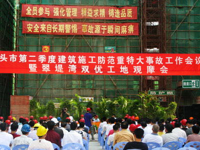 會上,深圳市天恒泰建筑工程有限公司林立典副總經(jīng)理介紹了創(chuàng)建“雙優(yōu)工地”工作的體會;市建設(shè)工程安全監(jiān)督總站吳漢川站長對翠堤灣工地的創(chuàng)優(yōu)工作作了點評。