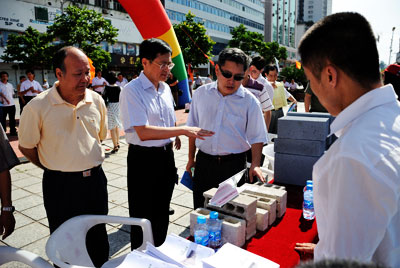 在活動(dòng)現(xiàn)場,市建設(shè)局積極發(fā)放建筑節(jié)能宣傳資料,向群眾宣傳建筑節(jié)能法律、法規(guī)以及相關(guān)知識(shí),解答建筑節(jié)能有關(guān)問題。市升建、保源建材、金馬、魯邦建材等4家新型墻體材料企業(yè)在活動(dòng)現(xiàn)場展示了企業(yè)最新建筑節(jié)能成果及10多種建筑節(jié)能新產(chǎn)品、新材料,并接受群眾對新型節(jié)能新材料、新產(chǎn)品、新技術(shù)、新工藝的咨詢?,F(xiàn)場吸引了眾多群眾的參與,活動(dòng)氛圍異常熱烈,共發(fā)放建筑節(jié)能各類資料2000多份,解答群眾各類提問80多個(gè)。