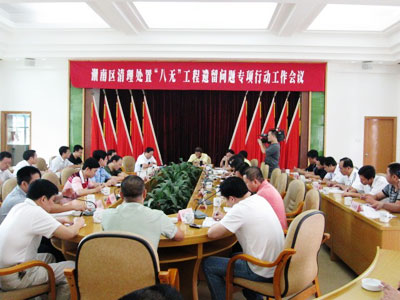區(qū)委常委、常務(wù)副區(qū)長(zhǎng)黃蘅在講話中指出,通過前階段的專項(xiàng)行動(dòng),較好地處置解決了潮南區(qū)土地、建筑市場(chǎng)多年積累的歷史遺留問題,一定程度上剎住了長(zhǎng)期以來不按法定基建程序建設(shè)的違規(guī)行為,提高了建設(shè)單位及業(yè)主的法制觀念,逐步規(guī)范了建筑市場(chǎng)秩序。各鎮(zhèn)、街道要按照“屬地管理”原則,切實(shí)擔(dān)負(fù)起清理處置“八無”工程項(xiàng)目遺留問題的主體責(zé)任,組織強(qiáng)有力的清查整治隊(duì)伍,繼續(xù)進(jìn)行全面清理。各有關(guān)職能部門要加強(qiáng)監(jiān)管指導(dǎo),督促工程業(yè)主完善相關(guān)手續(xù)。要進(jìn)一步加強(qiáng)宣傳教育,增強(qiáng)廣大工程業(yè)主的依法建設(shè)意識(shí),促使“八無”工程業(yè)主遵守相關(guān)法律法規(guī),自覺整改,主動(dòng)補(bǔ)辦相關(guān)手續(xù)。