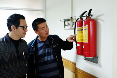 (市質(zhì)監(jiān)站檢測室人員在檢查消防設(shè)備)