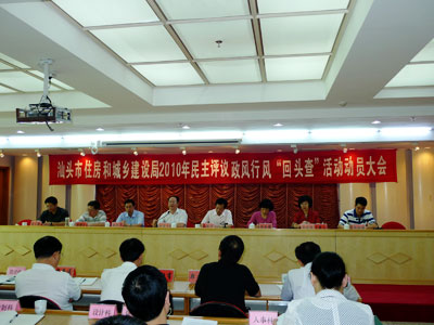 局長(zhǎng)王德聲同志作動(dòng)員講話,對(duì)我市住建系統(tǒng)今年開(kāi)展“回頭查”的情況進(jìn)行了全面分析,指出了目前全系統(tǒng)政風(fēng)行風(fēng)建設(shè)方面存在的主要問(wèn)題,并對(duì)全局下一階段工作提出了要求。一是要統(tǒng)一思想,提高認(rèn)識(shí),增強(qiáng)抓好政風(fēng)行風(fēng)“回頭查”工作的責(zé)任感;二是要突出重點(diǎn),統(tǒng)籌兼顧,扎實(shí)開(kāi)展民主評(píng)議政風(fēng)行風(fēng)“回頭查”工作;三是要以開(kāi)展“回頭查”工作為切入點(diǎn),進(jìn)一步提高執(zhí)行力,推動(dòng)住房城鄉(xiāng)建設(shè)工作上新臺(tái)階。