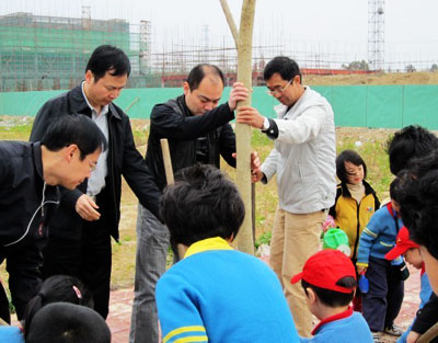 瀏覽次數(shù):1433近日,龍湖區(qū)綠化辦組織區(qū)五套班子的領(lǐng)導(dǎo)和35個(gè)區(qū)直機(jī)關(guān)單位干部職工500多人及汕特幼兒園、中心幼兒園、丹霞幼兒園等3所幼兒園的師生230多人,到珠津工業(yè)區(qū)新擴(kuò)南片參加全民義務(wù)植樹(shù)活動(dòng),共種植430多株桃花心木和小葉榕樹(shù)。日資矢崎公司也由董事長(zhǎng)帶領(lǐng)30多名員工參加了這次植樹(shù)節(jié)活動(dòng)。