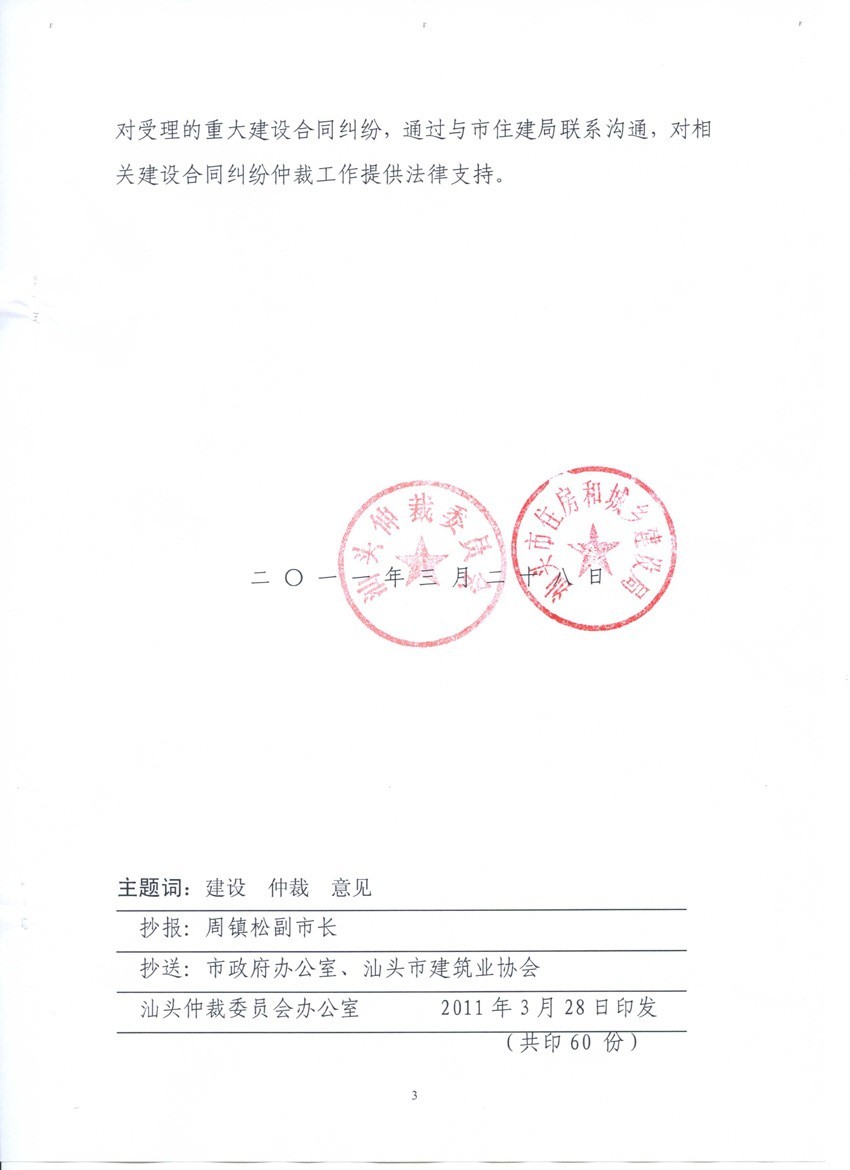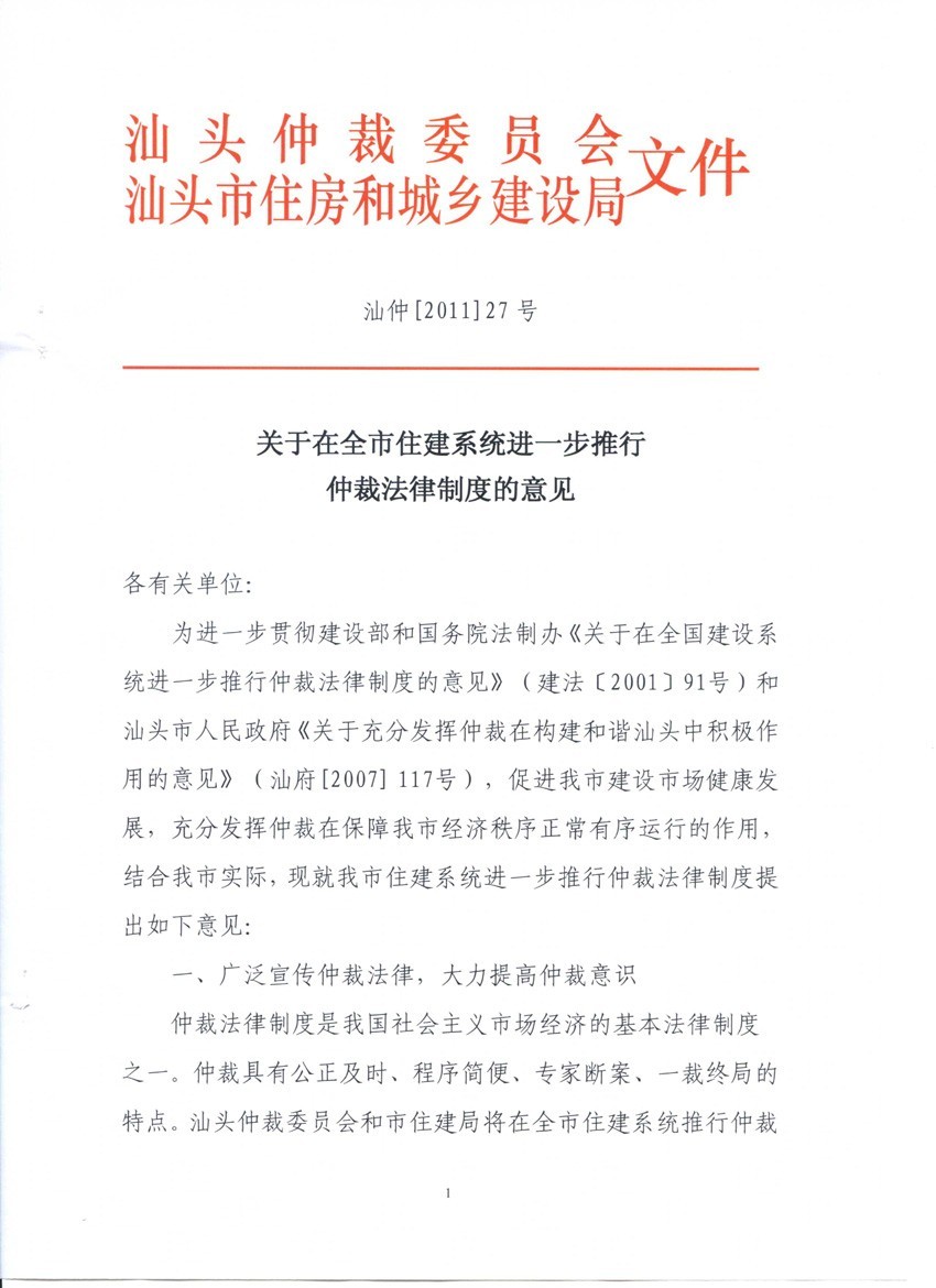 關于在全市住建系統(tǒng)進一步推行仲裁法律制度的意見汕仲[2011]27號