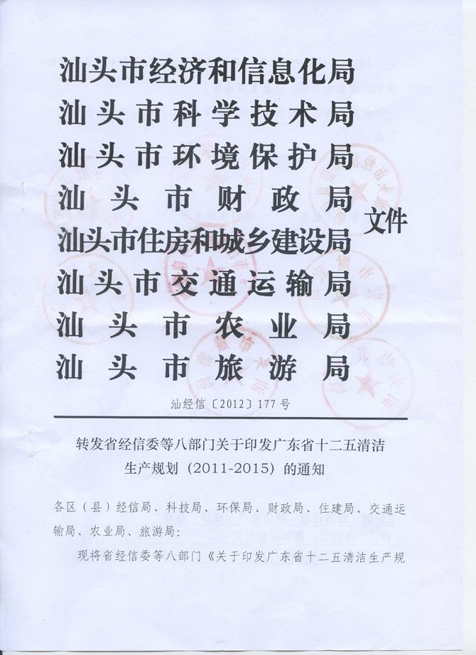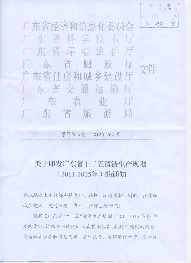 轉發(fā)省經信委等八部門關于印發(fā)廣東省十二五清潔生產規(guī)劃(2011-2015)的通知