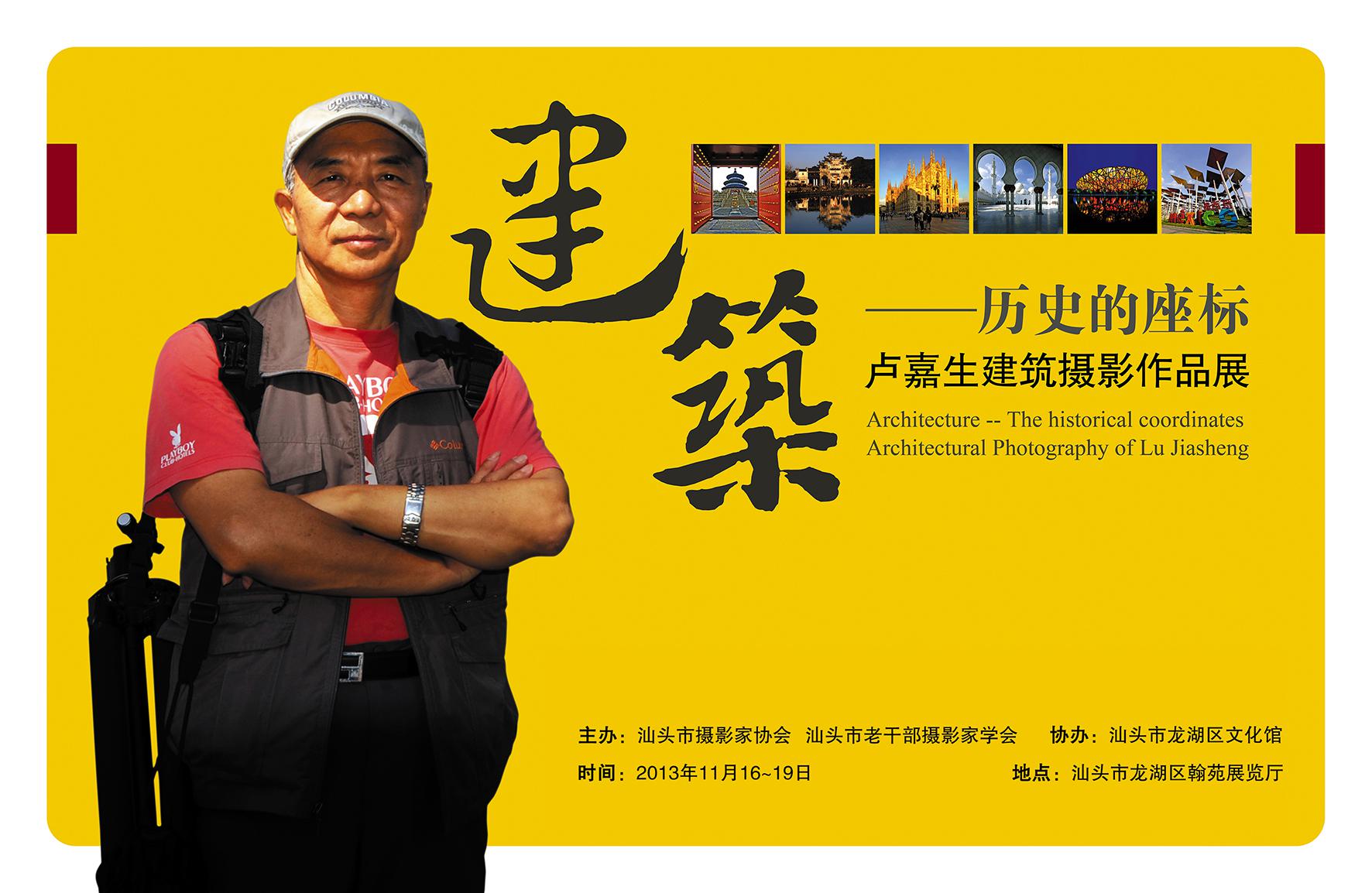 我市建筑師、規(guī)劃師盧嘉生同志的《建筑·歷史坐標(biāo)》建筑攝影作品展,將于2013年11月16日至19日,在汕頭市龍湖區(qū)翰苑展覽館舉行。歡迎大家蒞臨參觀!