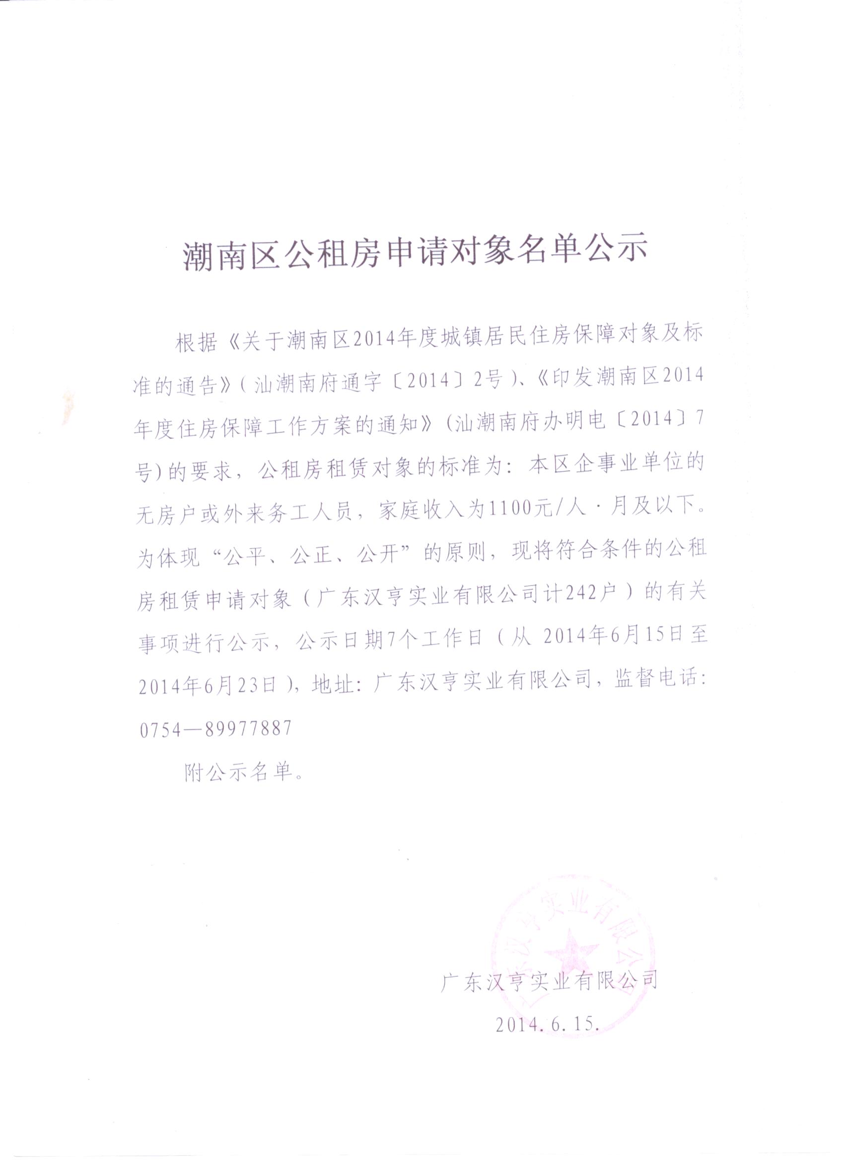 潮南區(qū)公租房申請對象名單公示