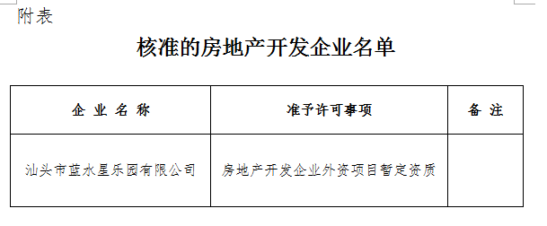 關(guān)于房地產(chǎn)開(kāi)發(fā)企業(yè)資質(zhì)核準(zhǔn)結(jié)果的公告汕住建公告〔2016〕10號(hào)