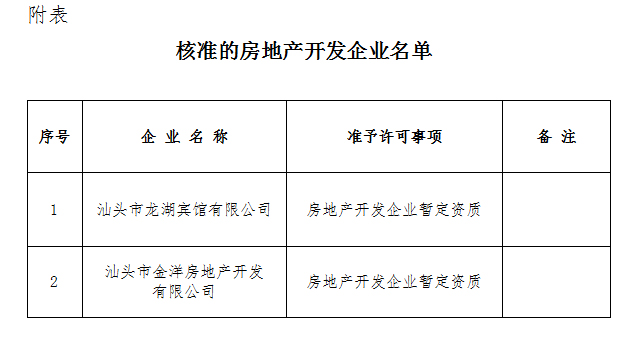 關于房地產(chǎn)開發(fā)企業(yè)資質(zhì)核準結(jié)果的公告汕住建公告〔2016〕16號