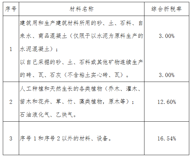 汕頭市中心城區(qū)各類建筑材料綜合折稅率