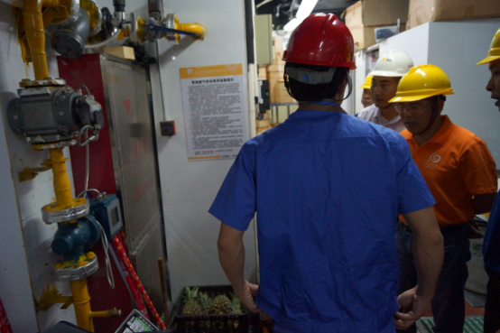 集商業(yè)、餐飲、娛樂、寫字樓為一體的大型商業(yè)綜合體,其消防安全管理尤其重要。此次管道燃?xì)獍踩珯z查主要是針對工商用戶用氣及報警器、調(diào)壓柜、流量計、緊急切斷閥、法蘭連接處等設(shè)備使用情況。經(jīng)檢查,燃?xì)庠O(shè)施運(yùn)行總體良好,但也發(fā)現(xiàn)了個別問題:F16控制中心報警器未粘貼公司報修電話、F16調(diào)壓柜上方用于裝卸的鐵繩在調(diào)壓柜安裝完畢后未及時拆除、卜蜂蓮花一些餐廳廚房報警器油污較嚴(yán)重問題,均當(dāng)場要求整改。