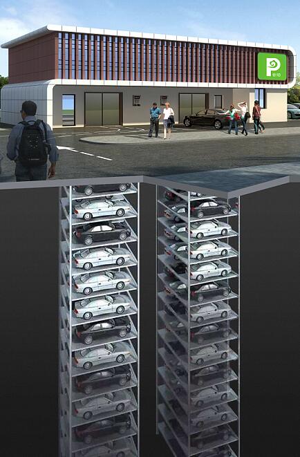 所謂井筒式地下停車庫,就是運用新型的電梯式基坑土方開挖和支護技術,開發(fā)利用邊角地塊和地下空間,建設電梯式地下車庫,將汽車(6座及以下)依次、有序、分層停到地下,解決了停車場建設與土地資源稀缺之間的矛盾。通俗來講,就是在地下挖口“井”,把地面已成熟應用的電梯式智能化立體車庫“搬”到地下,車從路面進入車庫車載板后,人下車,電腦程序控制載車板垂直向下,將車送到空的地下停車位上;取車原理相同。平均存取車時間僅需90秒。