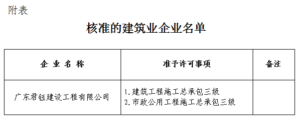 根據(jù)《中華人民共和國行政許可法》、《中華人民共和國建筑法》和有關(guān)建設(shè)工程企業(yè)資質(zhì)管理規(guī)定,現(xiàn)將經(jīng)我局審查核準(zhǔn)的建筑業(yè)企業(yè)名單予以公布(見附表)。
