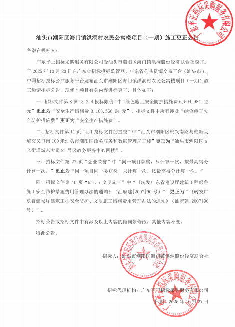 汕頭市潮陽區(qū)海門鎮(zhèn)洪洞村農(nóng)民公寓樓項(xiàng)目(一期)施工