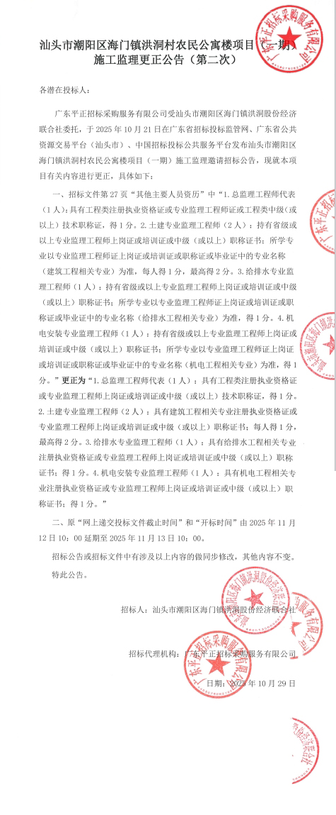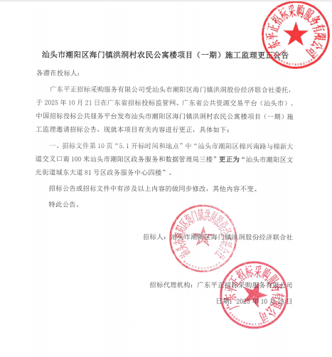 汕頭市潮陽區(qū)海門鎮(zhèn)洪洞村農民公寓樓項目(一期)施工監(jiān)理